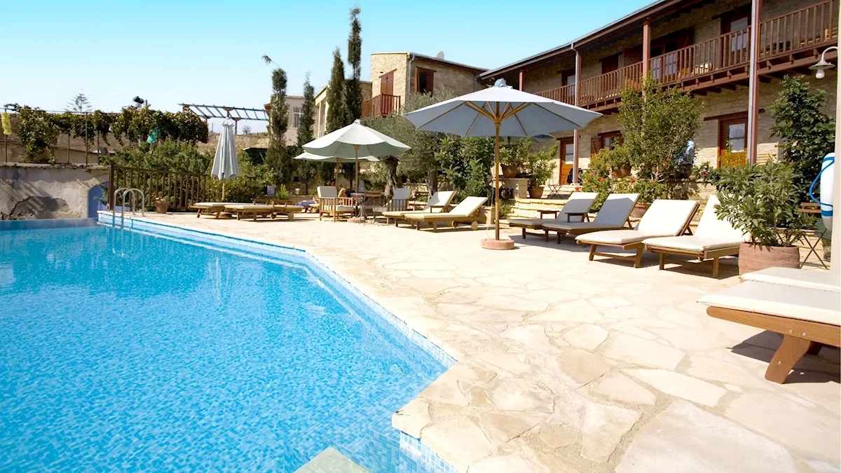 - 29 pokoi, kilka budynków podzielonych na 3 części: Eveleos Country House w Tochni, Evkarpos Country House w Psematismenos i Porfyrios Country House w Choirokoitia, do 1 piętra
