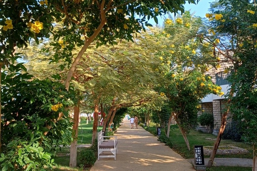 Aladdin Beach Resort v Hurghadě je místem, které kombinuje orientální atmosféru s pravým egyptským šarmem. Od prvního okamžiku na vás dýchne atmosféra odpočinkové dovolené – široká písečná pláž, tyrkysové moře a bujné zahrady vytvářejí ideální prostředí pro relaxaci. Největší předností hotelu je jeho vynikající poloha – jen pár minut od letiště a přímo na pláži. Rozsáhlý areál s turistickými stezkami, četnými bazény a aquaparkem zajišťuje, že si zde každý – od dětí až po dospělé – najde něco pro sebe. Pochvalu si zaslouží i přátelský a ochotný personál, který hosty vítá s úsměvem a vytváří příjemnou atmosféru. Bufet je pestrý a lahodný a tematické restaurace nabízejí rozmanitou kuchyni z celého světa. Animační tým pořádá večerní show, které zajišťují, že večery jsou plné energie a zábavy. Není však pochyb o tom, že některé pokoje potřebují osvěžení a Wi-Fi není vždy perfektní. V restauraci se také ve špičce dělají fronty. Navzdory tomu je poměr ceny a kvality vynikající a pozitivní emoce rozhodně převažují nad případnými drobnými nepříjemnostmi. Stručně řečeno, Aladdin Beach Resort je skvělou volbou pro rodiny s dětmi a ty, kteří hledají bezstarostnou dovolenou pod egyptským sluncem. Je to místo, kam se budete chtít vrátit – plné úsměvů, barev a vzpomínek, které vám zůstanou v paměti ještě dlouho po skončení dovolené.
