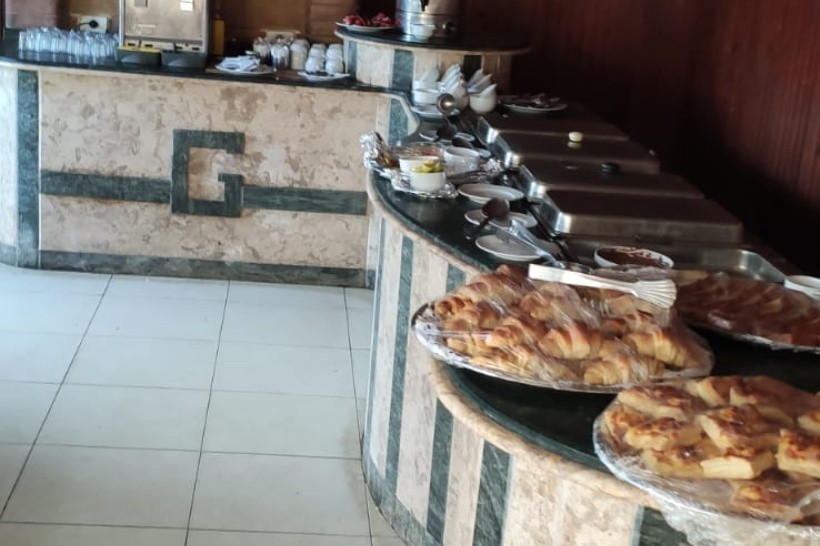 Každý den to samé, k snídani jen káva, k kávě žádné mléko. Jen černý čaj. Žádné nápoje pro děti. Byla tam voda. K večeři nebyly žádné nápoje. Bylo velmi otravné muset se pokaždé, když jste si objednali jídlo nebo dokonce vodu, ptát na číslo pokoje. U bazénu byl bar se dvěma nebo třemi lahvemi, ale žádné svačiny. Nic pro děti. Trocha sezónního ovoce. Žádné nápoje k večeři. Nic pro děti.