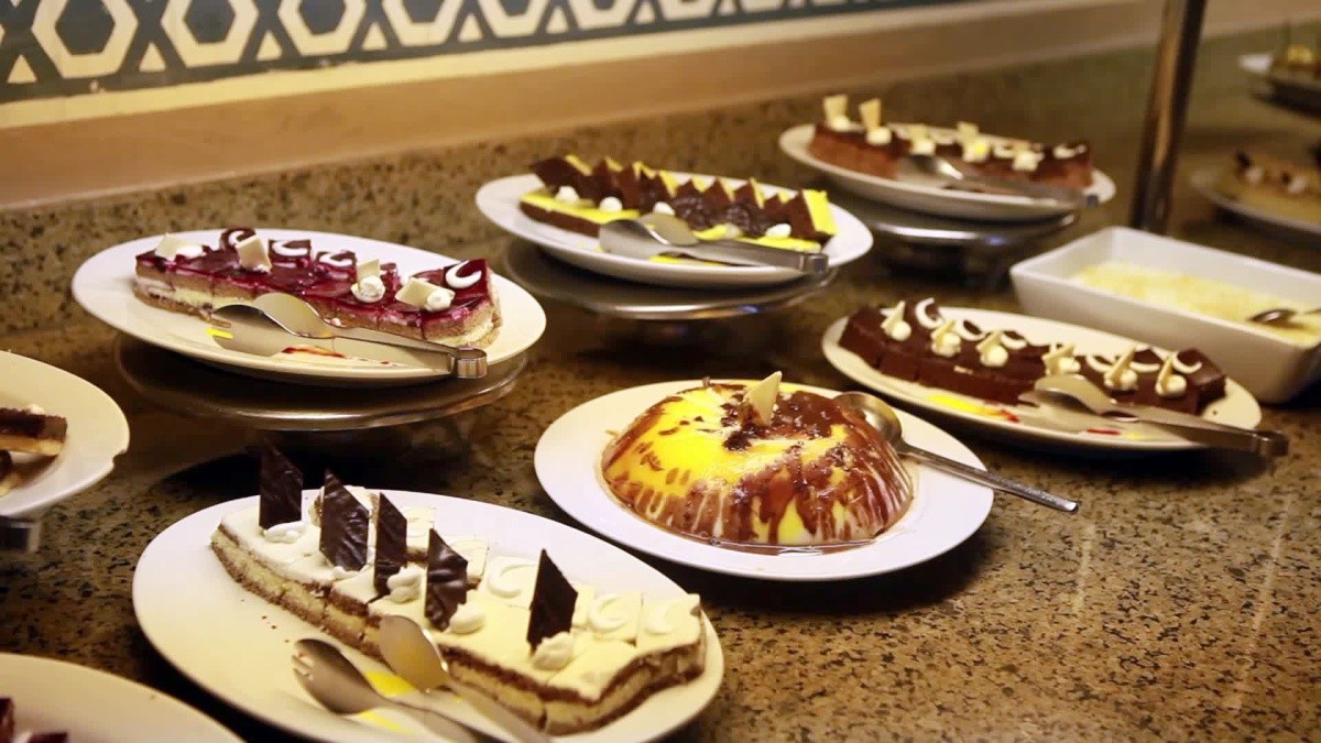 All inclusive stravovanie od 10:00 do 24:00 možno čerpať vo vybraných priestoroch hotela a zahŕňa plnú penziu formou bohatého bufetu, počas dňa ľahké občerstvenie (pečivo, zákusky, káva, čaj, zmrzlina), neobmedzené množstvo rozlievaných alkoholických (pivo, víno, vodka, rum, likéry, whisky, miešané nápoje) a nealkoholických nápojov miestnej výroby. Ostatné alkoholické nápoje vo fľašiach, turecká káva a čerstvé ovocné šťavy sú za poplatok. Počas večere je vyžadované formálne oblečenie (dlhé nohavice u mužov). Pre deti je k dispozícii detský bufet. Hotel organizuje pravidelné tematické večere (orientálna, mexická, talianska).