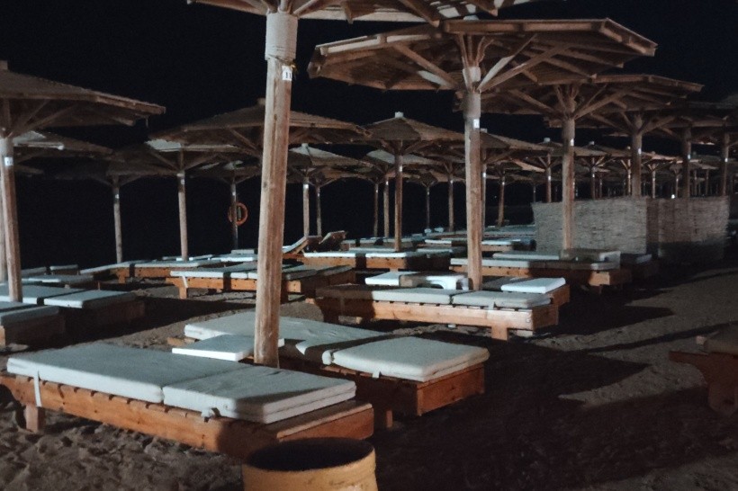 menšia čistá pláž , ráno bolo treba isť si zarezervovať lehátka pod slnečníkom, na môj vkus slnečníky príliš blízko vedľa seba, trochu viac súkromia by potešilo, pár zábran proti vetru, ale tých mohlo byť aj viac , 2 dni nám fúkalo a hodili by sa , topánky do vody sme nepotrebovali, nám chýbala možnosť ísť sa prejsť niekam pozdlž mora, more krásne, čisté , hlboké - plávať sa dalo hneď od brehu, jedno poobedie však celkový super dojem z mora pokazila loď kotviaca pri mole z ktorej unikla nafta , takže to poobedie naftu s olejom bolo nielen citiť ale aj vidieť na hladine
