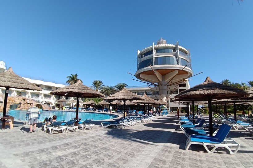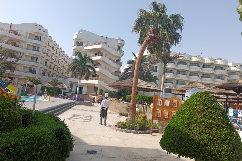 Rozsiahly hotelový komplex je situovaný priamo pri vlastnej súkromnej piesčitej pláži v malom závile v samotnom centre letoviska Hurghrady. Vzdialenosť od letiska je 10 km, nákupné možnosti hostia majú v bezprostredenej blízkosti hotela.