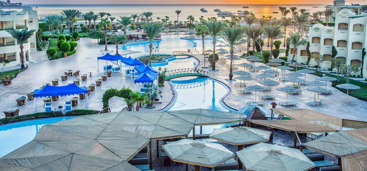 Rozľahlý hotelový komplex je situovaný v letovisku Makadi Bay, v pokojnej časti priamo na dlhej pozvoľne sa zvažujúcej piesočnatej pláži. V rámci areálu je zriadený malý prístav. Z pláže je priamy prístup k neporušenej časti pobrežného koralového útesu, ktorý dáva možnosť zoznámiť sa s bohatstvom podmorského života priamo pri hoteli. Do centra Hurghady, vzdialeného asi 30 km, hotel vypravuje 2x denne autobus za poplatok. Letisko je vzdialené približne 25 km.