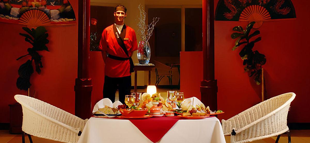 All inclusive je možné čerpať vo vybraných priestoroch hotela medzi 10:00 - 24:00 a zahrňuje raňajky, obedy a večere formou bufetu, poobede ľahké občerstvenie, neobmedzené množstvo nealkoholických nápojov (postmixové nápoje, džúsy, voda, káva, čaj) a miestne alkoholické nápoje (pivo, víno, rum, whisky, gin, brandy). K dispozícii je tiež špeciálny detský bufet (12:30 - 14:00).