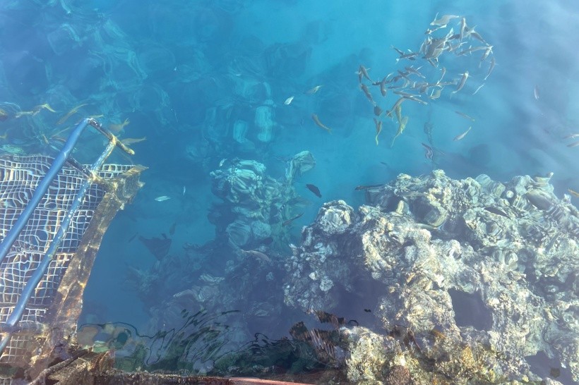 Pláž písčito oblázková, dostatek lehátek, vždy se našlo místo, ale počítejte, že ke vstupu se kousek projdete i přesto, že Solaya je k zátoce nejblíž. Nicméně zátoka je naprosto úžasná, už jen kvůli ní by stálo za to se vracet. Pozvolný vstup bez korálů, ráno se tam na trávě prý i pásly želvy, ale my jsme tak brzy nikdy nevstali, abychom je viděli. Po stranách korálové útesy, přístup z mola ale i z pláže. Značka ideál. Při dobré viditelnosti bylo vidět i několik metrů na dně - to se měnilo každý den, někdy bylo vidět líp, někdy hůř. Celkově fakt nádhera. Chybělo tam ale zázemí, žádná toaleta, bar, jen uprostřed cca taková malá budka na pití. Na toaletu se muselo vracet až k bazénům.