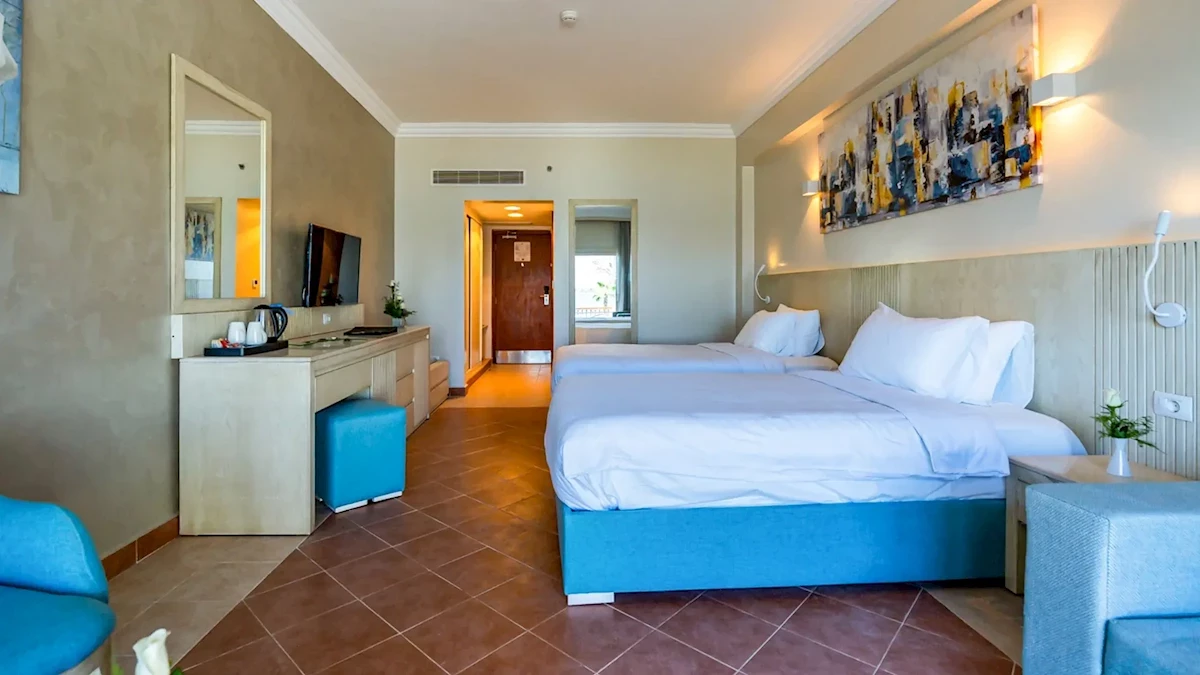 Ubytování bylo výborné, prostorný pokoj, velký balkon, vše čisté. Jen výhled to kazil, hotel je osamocený vedle rozestavěného hotelu a z druhé strany nějaká neobydlená budova a kolem dokola příšerný nepořádek