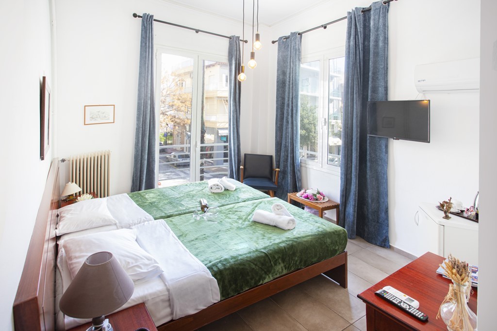 V nabídce máme jednolůžkový pokoj (na vyžádání), dvoulůžkový pokoj s možností až dvou přistýlek pro dítě, třílůžkový pokoj až pro tři dospělé osoby (na vyžádání) nebo čtyřlůžkový pokoj s přistýlkou pro až čtyři dospělé a jedno dítě. Všechny pokoje disponují satelitní TV, ledničkou, rychlovarnou konvicí, klimatizací a Wi-Fi připojením. Koupelny mají vysoušeč vlasů. Pokoje máme v nabídce s výhledem na moře nebo na pohoří.