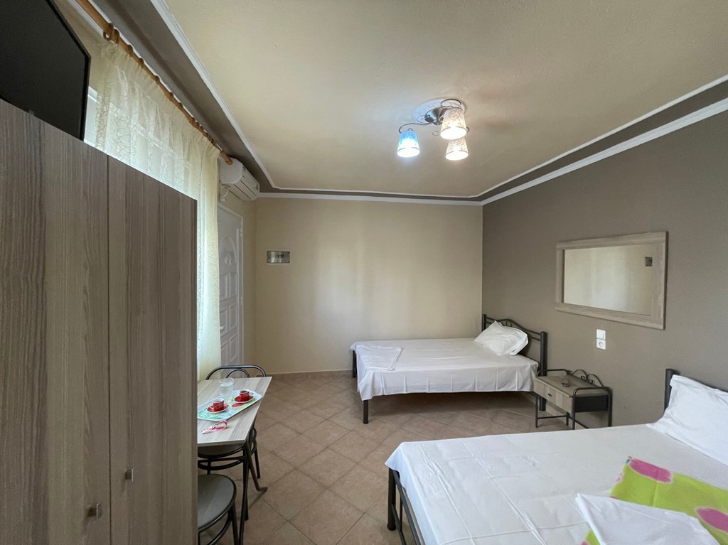 Lafazanis, ubytování, kde se budete cítit jako doma. Pokoje jsou útulné, a ještě voní novotou. Budete v centru dění, ale přitom v klidné oblasti, kde můžete odpočívat na balkoně a užívat si řeckou atmosféru letoviska Vrasna.