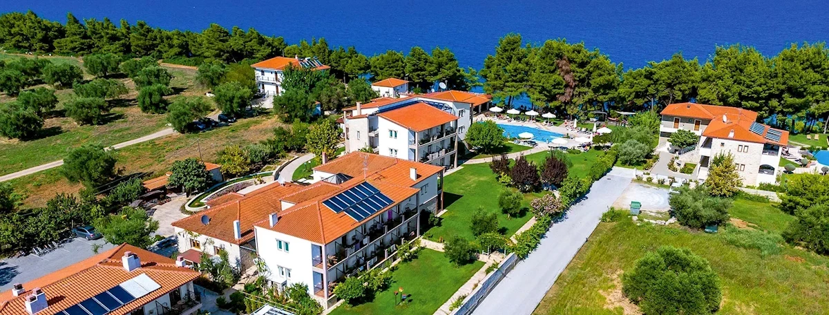 PołożenieHotel usytuowany na wzniesieniu z panoramicznym widokiem na Zatokę Toronejską oraz Sithonię. Architektura pozostająca w harmonii z otaczającą naturą.Zaciszne położenie obiektu Kompleks oddalony jest o ok. 500 m od tętniącego życiem kurortu Kalithea oraz ok.1100 m od miejscowości Afitos (dojście mało ruchliwą asfaltową drogą). Odległość od lotniska w Salonikach wynosi ok. 77 km.