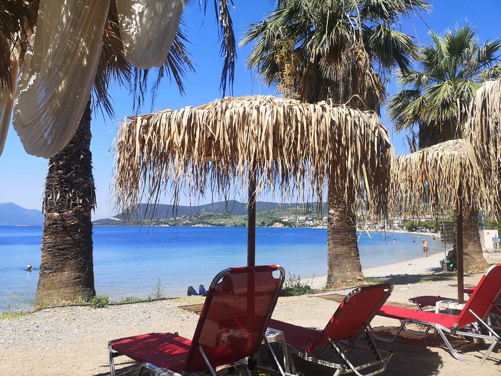 pláž 140 m, centrum Pefki 100 m, letiště Nea Anchiaos 80 km. Cesta z letiště je autobusem do přístavu Glifa, následuje cesta trajektem (i s autobusem) na ostrov Evia a poté rozvoz do hotelů.