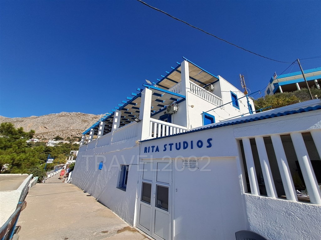 Ubytování v penzionu Rita bylo pěkné s nádherným výhledem na ostrov Telendos. Majitelka denně uklízela, čisté ručníky a vždy nějaká pozornost na klice u dveří. Jsou zde ale i menší nedostatky. Matrace, které potřebují výměnu a ve sprchovém koutě není vystavěný rantl na odtok vody ze sprchy.