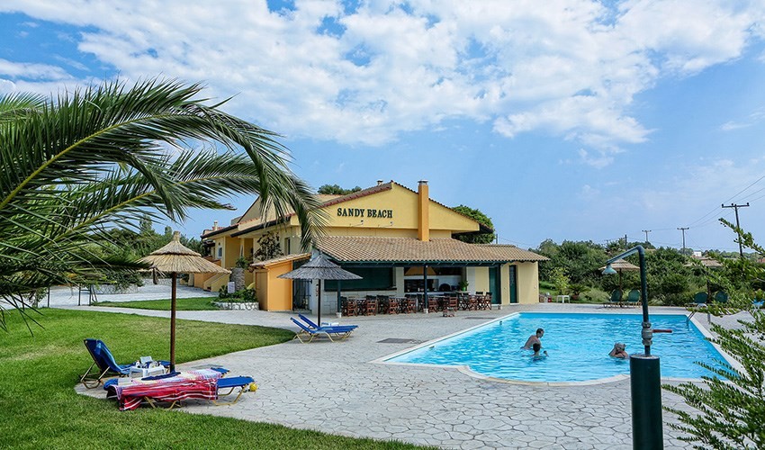 Sandy Beach Villas & Apartments je příjemný a klidný areál situovaný v zelené zahradě v letovisku Svoronata na ostrově Kefalonia, jen pár kroků od oblíbené písečné pláže Ammes. Dům je určen pouze pro osoby od 12 let a nabízí ubytování ve studiích a apartmánech, které jsou ideální volbou pro páry i rodiny s většími dětmi preferující pohodovou dovolenou v neformální atmosféře. Všechny ubytovací jednotky jsou vybaveny kuchyňským koutem, klimatizací, TV, Wi-Fi připojením. Hosté mohou využívat venkovní bazén s lehátky a slunečníky, pool bar s drobným občerstvením a udržovanou zahradu, která poskytuje dostatek soukromí a klidu k odpočinku. Velkou výhodou je výborná poloha blízko pláže, taveren i menších obchodů, stejně jako krátká vzdálenost od letiště, což zajišťuje pohodlný transfer. Sandy Beach Villas & Apartments jsou ideálním místem pro klienty, kteří hledají kombinaci klidu, pláže a flexibility vlastního stravování v autentickém řeckém prostředí.