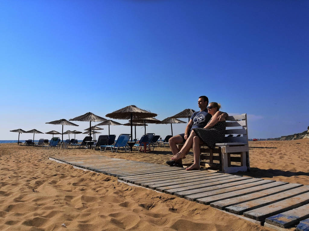 Na pláži je možné zapůjčení 2 lehátek se slunečníkem za cca 6,- Eur/den.