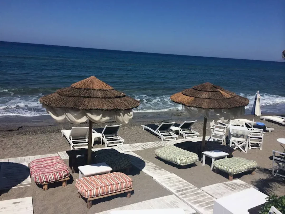 Wydzielona część plaży publicznej, Piaszczysta, Kamieniste zejście do morza, Dojście do plaży przez ulicę, tunelem itp., odleglość do plaży: 10 m, długość plaży: 500 m, Parasole - płatne, Leżaki - płatne, Ręczniki - płatne, Beach Bar - płatne, PrysznicJedzenie i picie
