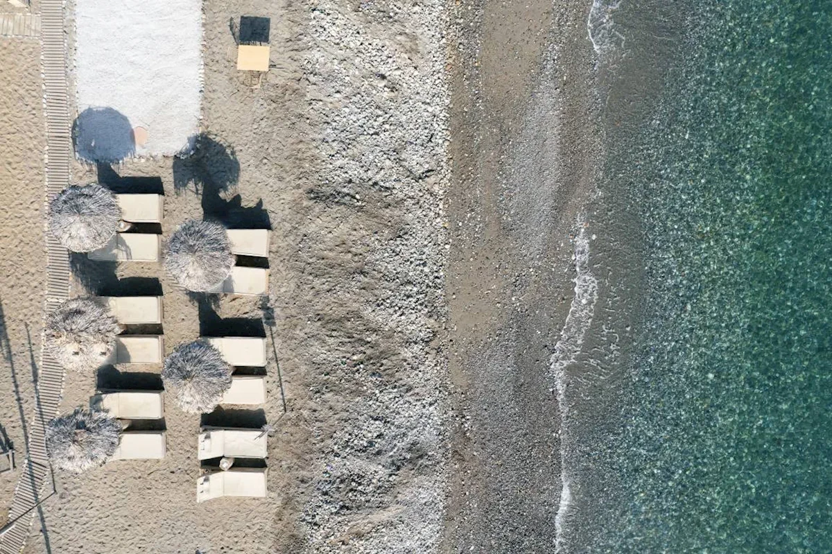 Wydzielona część plaży publicznej, Piaszczysto-żwirowa, Piaszczysto-żwirowe zejście do morza, odleglość do plaży: 10 m, długość plaży: 80 m, Leżaki - bezpłatnie, Ręczniki - bezpłatnie, Beach Bar - płatne, PrysznicUsługi dodatkowe