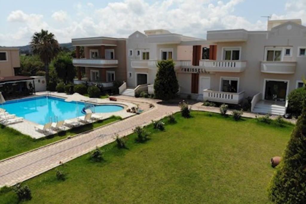Penzion Chrisselen je na kraji letoviska mimo rušné centrum a od silnice ho odděluje krásná a udržovaná zahrada. Bazén je velký, čistý a vždy jsme našli volná lehátka. Velikost studia nás velmi mile překvapila, protože kromě ložnice s manželkou postelí jsme měli také velkou místnost s dvěma sedačkami a stolkem a velkým stolem se čtyřmi židlemi. Z velkého balkónu, kde byl stůl se třemi židlemi a sušák na prádlo, byl opravdu krásný výhled. Sprchový kout může být pro silnější osoby trochu těsnější, ale my jsme ocenili, že měl místo typického řeckého závěsu normální zástěnu. Kuchyňská linka klasická, miniaturní a pokud by si chtěl někdo vařit, tak by měl asi problém, ale na přípravu snídaně v pohodě. Neměli jsme rychlovarnou konvici, takže jsme si vodu na kafe vařili bez problémů na plotýnce v hrnci. Co by rozhodně stálo za výměnu byla lednička, která nejspíš nevydrží do další sezóny, ale naštěstí ještě chladila a i když se dvířka od mrazáku nedala zavřít, tak nanuky se neroztekly ????. Matrace na posteli byla tvrdší a každému vyhovuje něco jiného, ale naštěstí to nebylo tak hrozné, jak některé starší recenze popisují. Poplatek se platí 2 €/den jako u dvouhvězdičkového ubytování a kdo není náročný a ubytování potřebuje hlavně na přespání, tak bude spokojený jako my.