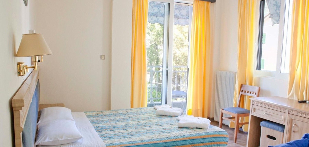 Príjemný rodinný hotel disponuje 18 izbami a štúdiu rozmiestnenými v hlavnej trojposchodovej budove a priľahlé depandanci obklopené krásnou zeleňou. Klientom je k dispozícii vstupná hala s recepciou a lobby barom, vnútorná a vonkajšia reštaurácia s terasou (výhľad na more), snack bar, salónik sa satelitný TV a parkovisko (pre motocykle).Ubytovanie