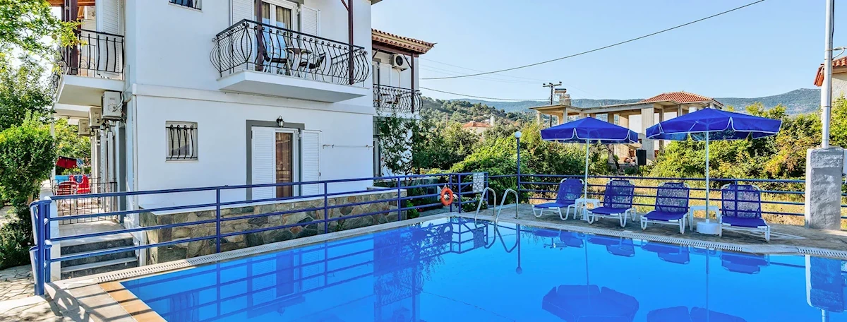 PołożenieStudia mieszczą się w środkowej części spokojnego Anaxos na północy wyspy.Odległość z lotniska w Mytilene wynosi około 65 km. Obiekt znajduje się w niewielkiej odległości od plaży, a najbliższe sklepy i restauracje są w zasięgu kilkuminutowego spaceru. Do większych ośrodków turystycznych wyspy, takich jak Petra czy Molyvos, można dostać się komunikacją miejską z przystanku oddalonego o około 300 m od obiektu.