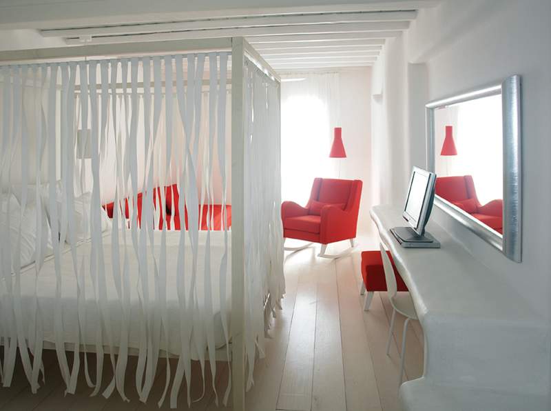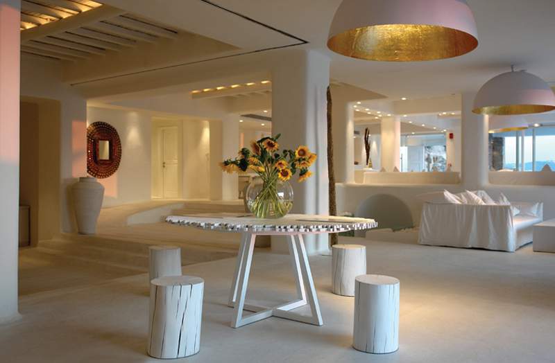 Das Designhotel fügt sich perfekt in die traditionelle weiße Architektur der Kykladenüber ein. Die Hauptstadt Mykonos ist in einem kurzen Spaziergang erreichbar. Zum Strand sind es 2,5 km. Das Ortszentrum mit zahlreichen Einkaufs- und Unterhaltungsmöglichkeiten sowie Restaurants und Bars erreichen Sie nach ca. 600m. Die Entfernung zum Flughafen beträgt ca. 5 km.