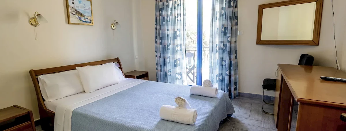 Plaża oddalona o 50 metrów od hotelu. Kamienisto-żwirowa. Leżaki i parasole dostępne po zamówieniu czegoś w barze hotelowym w sąsiednim obiekcie Aqua Rosa. W okolicy znajdują się również dwie piaszczyste plaże - Koutsoupia i Plati Amos.Do dyspozycji gości