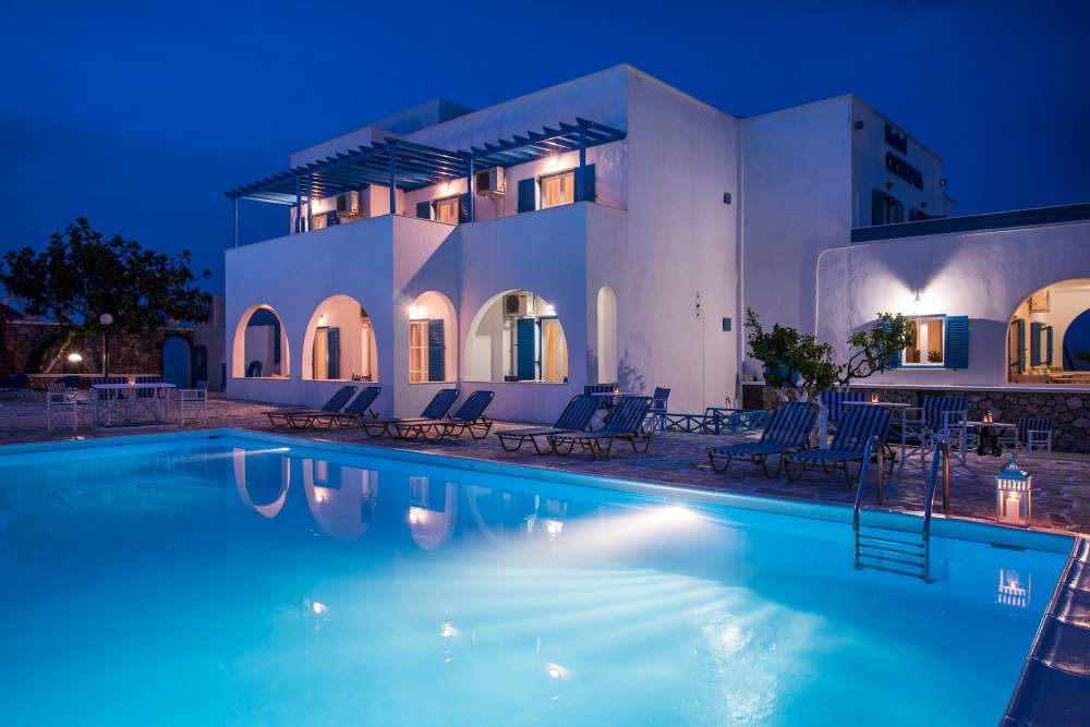 Das Villa Olympia Hotel befindet sich in Perissa. Den Strand erreichen Sie nach ca. 2,5 km. Das Ortszentrum mit zahlreichen Einkaufs- und Unterhaltungsmöglichkeiten sowie Restaurants und Bars erreichen Sie nach ca. 3,5 km. Die Entfernung zum Flughafen von Santorin beträgt ca. 13 km.