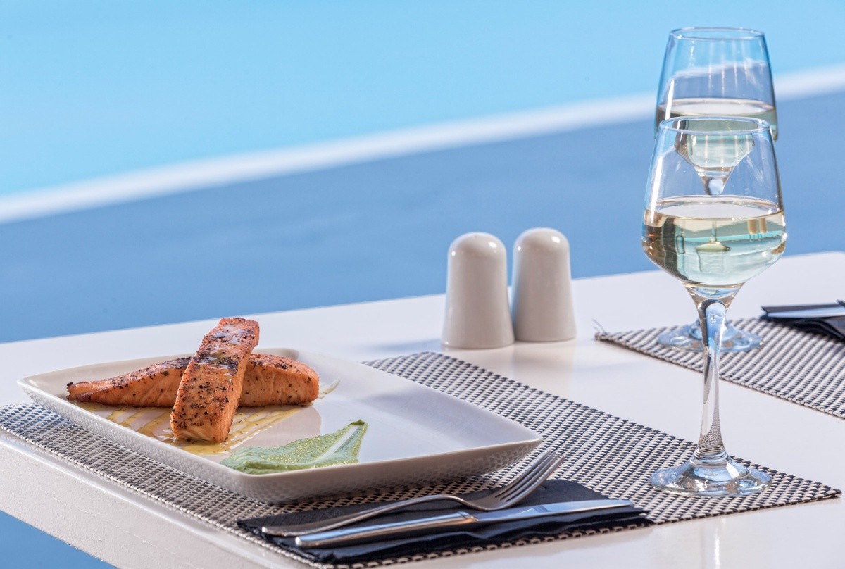 Sport & Fitness: Der Außenpoolbereich bietet erfrischendes Badevergnügen. Auf der Sonnenterrasse mit Liegestühlen und Schirmen lässt sich der Urlaub genießen. An der Pool-/Snackbar werden erfrischende Getränke angeboten. Tennis und Reiten werden von Drittanbietern organisiert. Fremdveranstalter bieten Tretbootfahren und Schnorcheln an. Yoga und Aerobic sowie gegen Gebühr ein Fitnessstudio sind Teil des Sport- und Freizeitangebots. Das Haus verfügt über einen Wellnessbereich mit Hydrotherapie-Anwendungen und einer Aromatherapie sowie gegen zusätzliche Gebühr ein Spa und eine Sauna.
