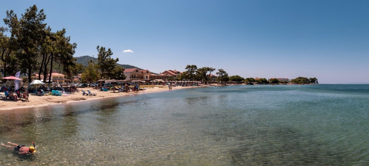 Pláž byla písčitá a čistá. Ze začátku při vstupu do moře byly oblázky, ale nic co by se nedalo zvládnout. Voda byla průzračná a i v hloubce bylo vidět na dno. Velkým plusem byly lehátka na pláži, která byly zdarma a bylo jich dostatek.