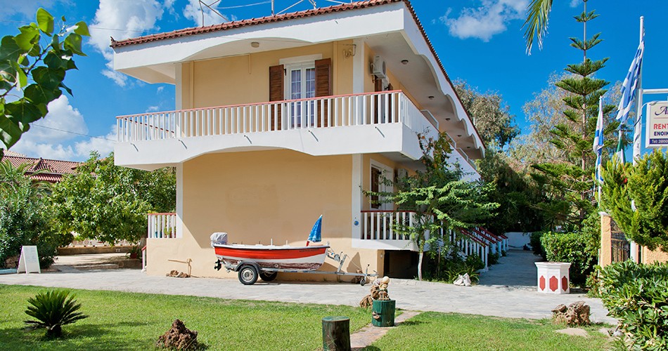 Veľmi dobre vedené rodinné štúdiá sú situované len niekoľko minút chôdze od centra živého letoviska Laganas, neďaleko preslávenej piesčitej korytnačej pláže. Nákupné možnosti a zábavu majú hostia v 5 minút vzdialenom pulzujúcom centre mesta (obchody, kaviarne, bary, karaoke bary, diskotéky, tanečné terasy, reštaurácie, taverny, športoviská, požičovne automobilov a motocyklov, vodné športy na pláži). Medzinárodné letisko Zakynthos je vzdialené 10 km.