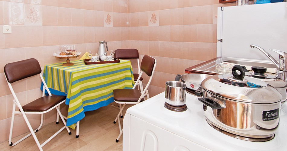 Vkusne zariadená, vzdušné dvojlôžkové štúdiá s možnosťou až dvoch prísteliek (pre deti) sú vybavené sociálnym zariadením (sprcha, toaleta, fén), kuchynským kútom (základný riad, chladnička, elektrický varič, kávovar na kávu, rýchlovarná kanvica), telefónom, klimatizáciou (za poplatok), rádiom, satelitný TV, trezorom (za poplatok) a balkónom alebo terasou (výhľad na bazén, záhradu, letovisko alebo na more). Detská postieľka a vysoká jedálenská stolička je k dispozícii na vyžiadanie (zdarma). Všetky štúdiá sú nefajčiarska.
