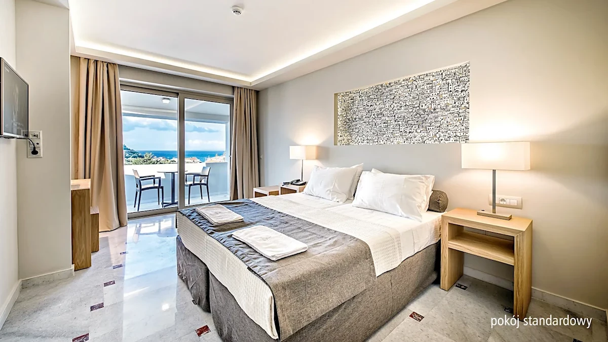 Moderne zariadené priestranné dvojlôžkové izby s možnosťou až 2 prísteliek sú vybavené vlastným sociálnym zariadením (sprcha alebo vaňa, WC, fén), telefónom, klimatizáciou, rádiom, TV s miestnymi programami, chladničkou, trezorom (za poplatok) a balkónom alebo terasou s výhľadom na more alebo bazén. Detská postieľka a vysoká jedálenská stolička je k dispozícii na vyžiadanie (zdarma). Väčšie rodinné izby s kapacitou až 5 osôb sú k dispozícii na vyžiadanie.