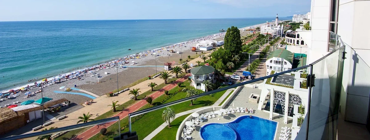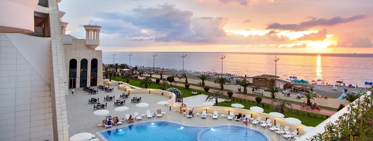 Lotnisko w Batumi oddalone jest od obiektu o ok. 5 km, a do lotniska w Kutaisi jest ok. 120 km. Ok. 200 m od miejsca zakwaterowania znajduje się aquapark w Batumi. Hotel położony jest tuż przy plaży nad brzegiem Morza Czarnego, z bezpośrednim dostępem do bulwaru Batumi z licznymi restauracjami, sklepami i klubami.Plaża