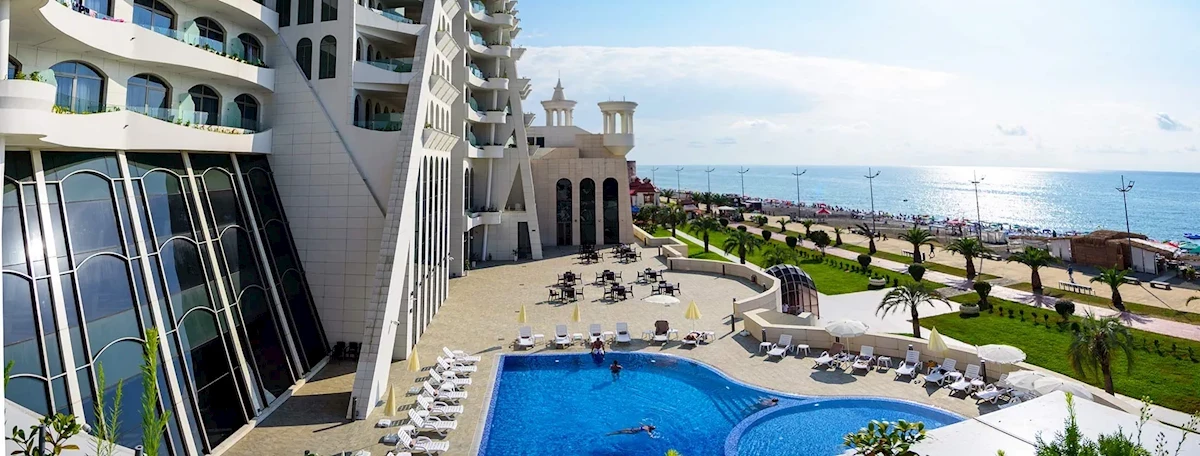 Lotnisko w Batumi oddalone jest od obiektu o ok. 5 km, a do lotniska w Kutaisi jest ok. 120 km. Ok. 200 m od miejsca zakwaterowania znajduje się aquapark w Batumi. Hotel położony jest tuż przy plaży nad brzegiem Morza Czarnego, z bezpośrednim dostępem do bulwaru Batumi z licznymi restauracjami, sklepami i klubami.Plaża
