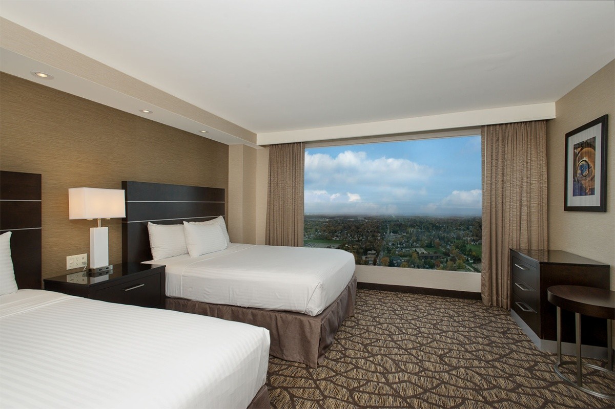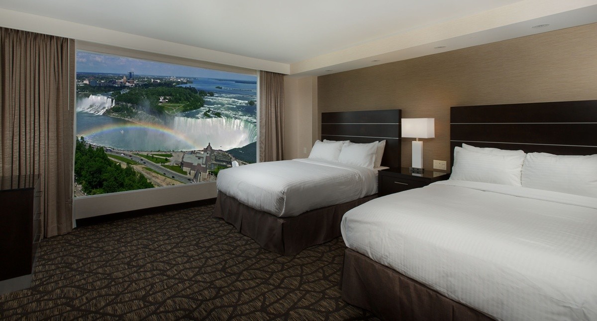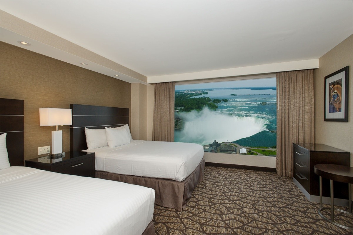 Lage & Umgebung Das Hotel befindet sich am Fallsview Boulevard im Fallsview-Touristenzentrum und liegt direkt neben dem Niagara Fallsview Casino und ist von den besten Restaurants und Attraktionen umgeben, so ist es eine der besten Unterkünfte in Fallsview. Die Lage des Hotels ist atemberaubend, nur ca. 90 m vom Ufer der Niagarafälle entfernt. Abgesehen von den tosenden Niagarafällen befinden sich auch viele weitere Sehenswürdigkeiten in der Nähe des Hotels, wie der Schmetterlingspark Butterfly Conservatory, die Vergnügungsstraße Clifton Hill, die Ausflugsdampfer Maid of the Mist, der Tunnel Journey Behind the Falls, der Golfplatz Legends of the Niagara und das Niagara Fallsview Casino Resort.