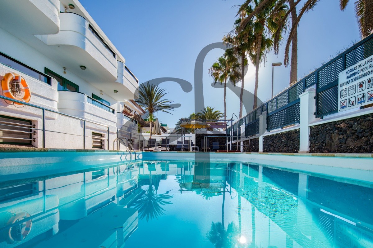 Poloha: Nachádza sa v prvom rade na pláži a priamo na plážovej promenáde. Piesočnatá zátoka je vzdialená len pár krokov. Na obľúbenú piesočnatú pláž Playa del Inglés sa dostanete cez ďalšiu malú plážovú zónu alebo približne 20 minút chôdze po plážovej promenáde (čiastočne po schodoch).