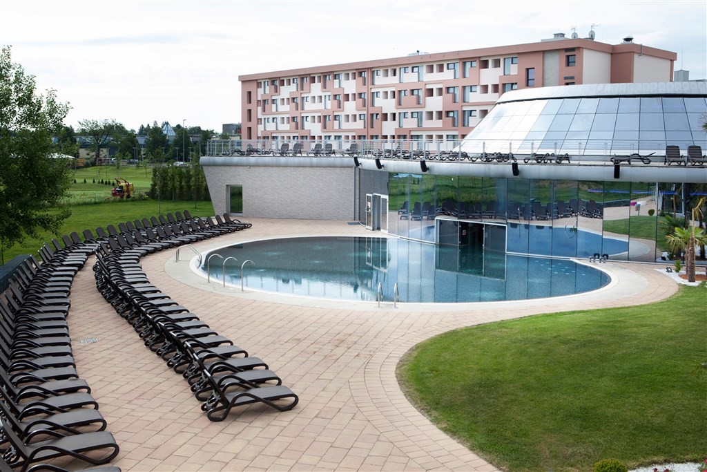 termální park a hotelové wellness o rozloze 1800 m2:vnitřní bazén s termální vodou, venkovní bazén s termální vodou, proplouvací bazén, velký venkovní bazén o rozloze 960m2, zážitkové bazény, dětský bazén, bazén se skluzavkou, jacuzzi, finská sauna, parní komora, biosauna, Kneipperův chodník, zážitkové sprchy, ochlazovací bazének, relaxační místnost, masáže, léčebné kůry, odpočinková zóna J-Lounge, fitness.
