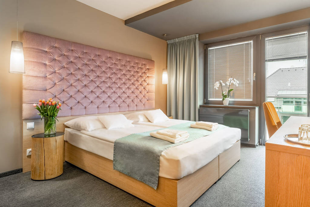 Pokoj Superior: max. 2 osoby, velikost cca 27 m2, navíc terasa/balkon s vířivkou