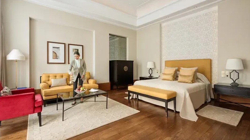 Die Zimmer: Die 84 Zimmer, Suiten und Villen im arabischen Stil spiegeln die Stimmung des alten Marrakechs wider, kombiniert mit modernen Einrichtungen und elegantem Design. Jedes Detail, von handgefertigten Ornamenten bis zu luxuriösen Stoffen, schafft eine harmonische Verbindung von Kultur und zeitgemäßem Wohngefühl. Noch mehr Privatsphäre und Ruhe bieten die Villen mit eigenem Pool und Garten. Mit Kingsize-Bett oder Twin-Betten, Bad mit freistehender Badewanne und separater Dusche, Bademantel, Föhn, Telefon, TV, WLAN (ohne Gebühr), Safe, Minibar, Klimaanlage, Terrasse oder Balkon.