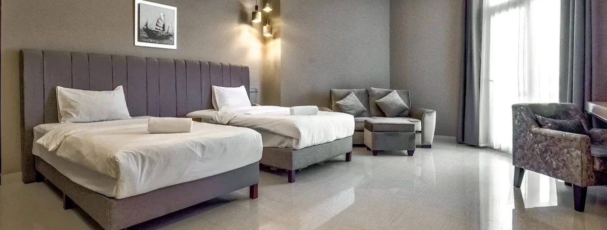 K vybaveniu hotela patrí 60 izieb, vstupná hala s recepciou, výťah, bar, konferenčná miestnosť, hlavná reštaurácia. Možnosť navštevovať vonkajší bazén susedného hotela Salalah Beach Villas (cca 30 m).Ubytovanie