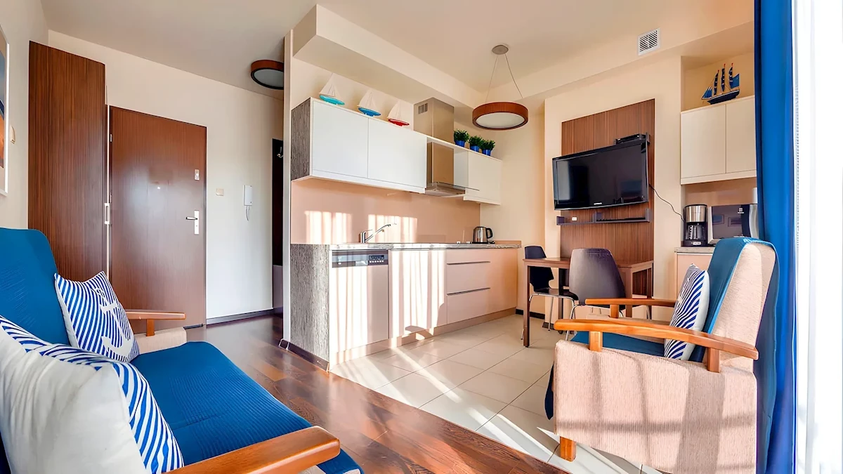 - akceptowane małe zwierzęta domowe (w wybranych apartamentach, na zapytanie, ok. 40 PLN/doba)