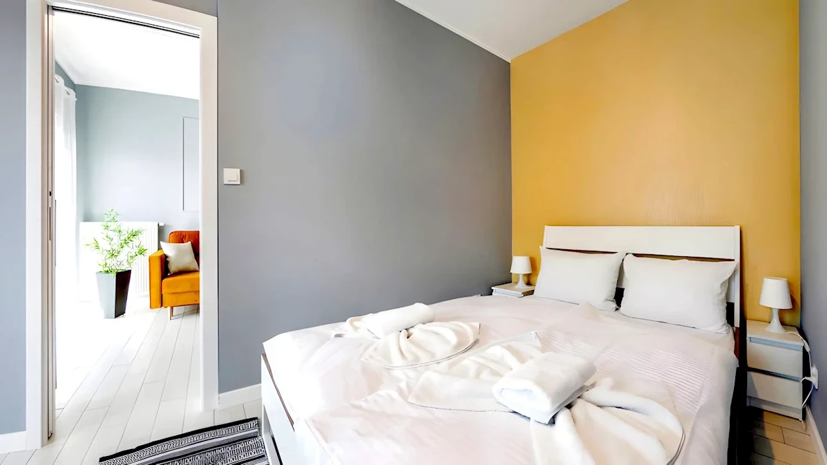 - sypialnia i pokój dzienny oddzielone drzwiami