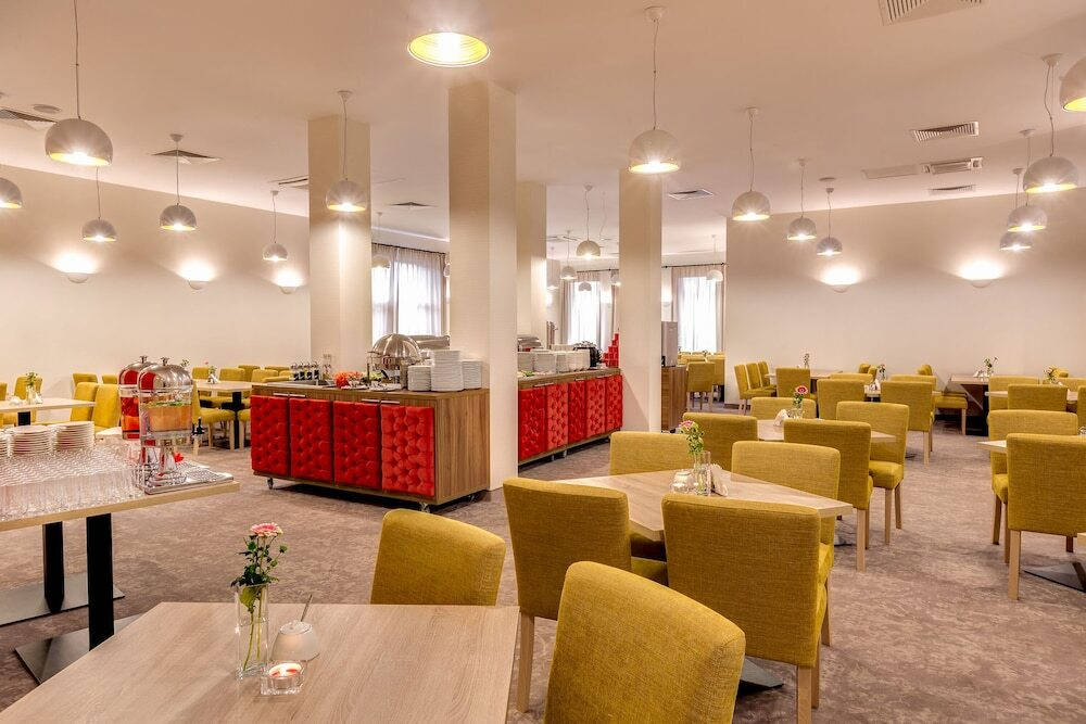 Restaurace v areálu poskytují snídaně formou bufetu a večeře s výběrem regionálních a mezinárodních jídel.