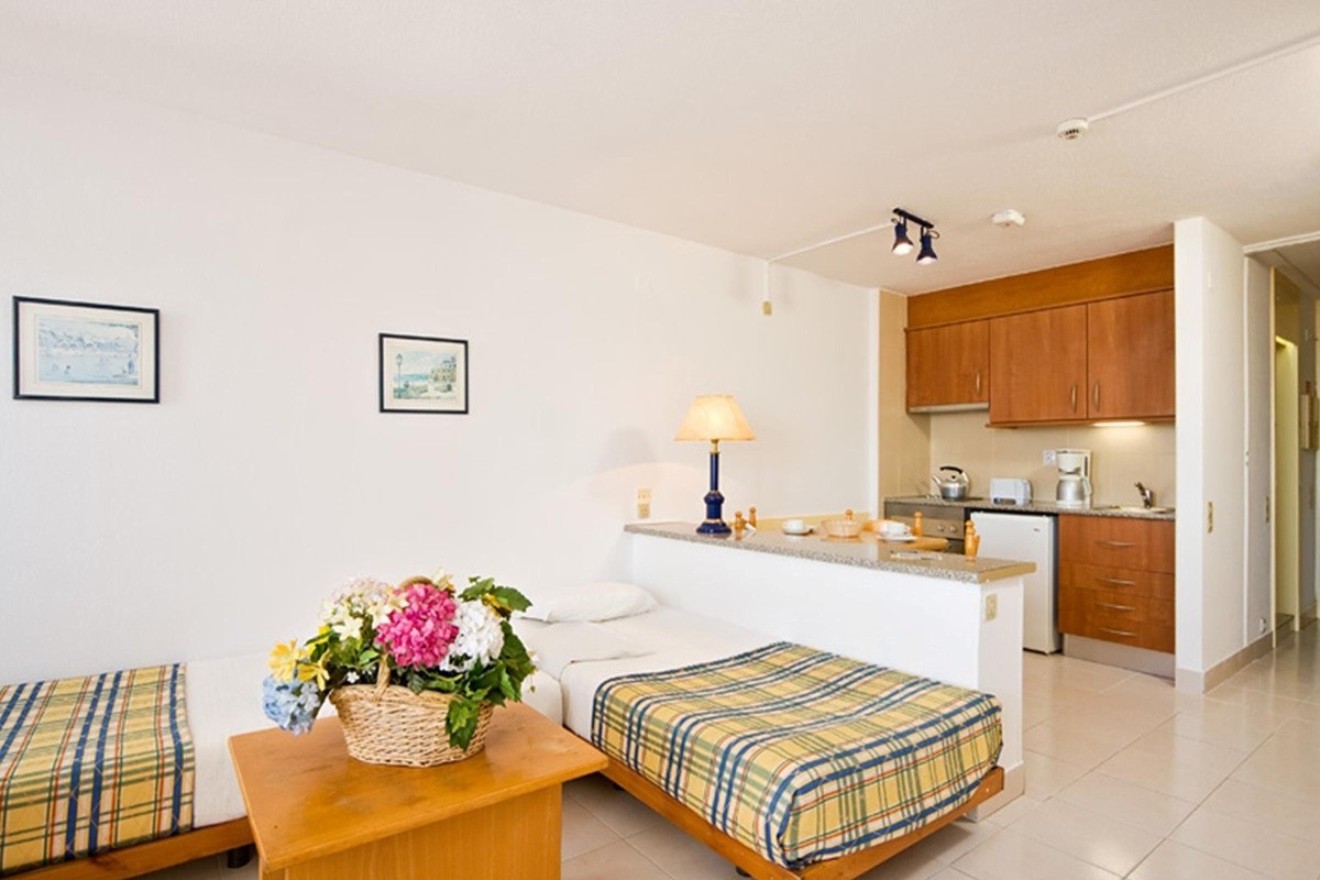 Prakticky zariadené štúdiá majú kombinovanú obývaciu izbu/spálňu, kuchynský kút, vaňu alebo sprchu/WC, klimatizáciu, satelitnú TV, minichladničku, trezor na prenájom a zariadený balkón alebo terasu. Voliteľne sú k dispozícii aj priestrannejšie apartmány s oddelenou spálňou s rovnakým vybavením ako štúdiá.