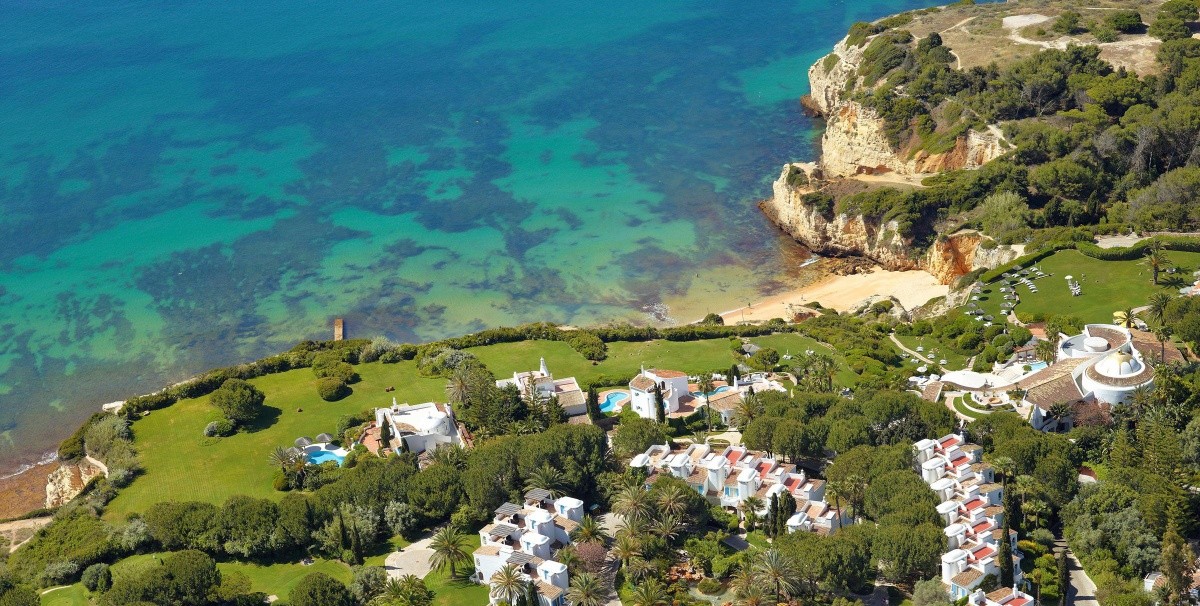 Das Hotel: Direkt an der Steilküste gelegenes renommiertes Ferienresort. Die Gebäude sind landestypisch der maurisch gefärbten Architektur angepasst und fügen sich harmonisch in die Landschaft ein. Die 22 ha große Anlage besteht aus dem modernen Hauptgebäude, den 2-geschossigen Reihen-Suiten „Oasis Parc“ (ca. 270 m zur Steilküste/Strand), der im Stil eines Herrenhauses gestalteten „Residence“ (nur für Erwachsene) und dem Spa- und Wellness-Bereich. Verschiedene Restaurants, 4 Swimmingpools (3 Außenpools und ein beheizter Innen-/Außenpool), Sonnenterrasse, Liegestühle, Sonnenschirme, 2 Kinderpools, Kid’s Club (4 bis 11 Jahre, ohne Gebühr), Kinderkrippe (1 bis 3 Jahre, gegen Gebühr), „ Piazzetta“ (Dorfplatz), VLife Boutiquen und Parkplatz. Zum öffentlichen Sandstrand sind es nur wenige Schritte (über Treppen erreichbar, Liegen und Schirme ohne Gebühr). Das hoteleigene Weingut „Herdade dos Grous“ ist ca. 1,5 Stunden, der Flughafen Faro ca. 45 km entfernt.