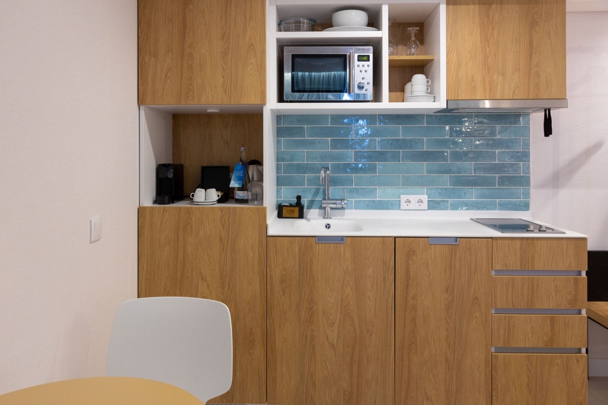 Hotel disponuje standardními pokoji, nebo studii s kuchyňským koutem.