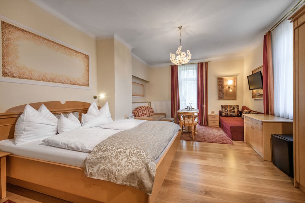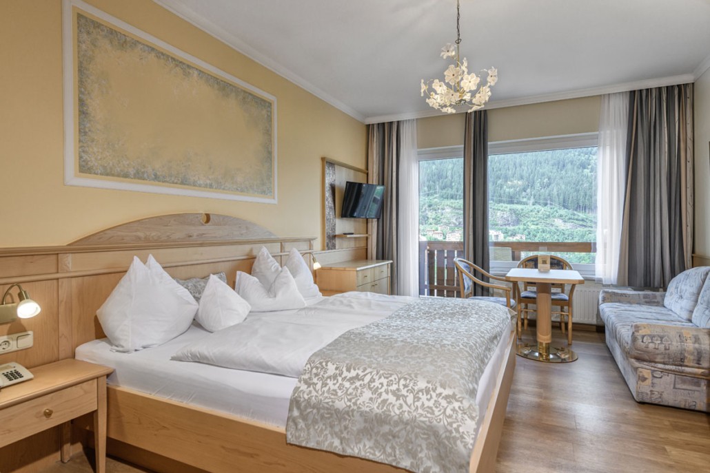 Obľúbený rodinný kúpeľný a horský hotel disponuje 32 izbami rozmiestnenými v štýlovej štvorposchodovej budove obklopené starostlivo udržiavanou záhradkou s nádherným výhľadom na romantické Gasteinské údolia. Klientom je k dispozícii vstupná hala s recepciou, zmenárňou, trezory (za poplatok) a lobby barom, internetový kútik (za poplatok), reštaurácia, salónik, výťah, knižnica, opaľovacie terasa, vyhrievaný bazén, úschovňa lyží a lyžiarskych topánok, sauna, parný kúpeľ, masážny salón a parkovisko. Priestory hotela sú nefajčiarske.Ubytovanie