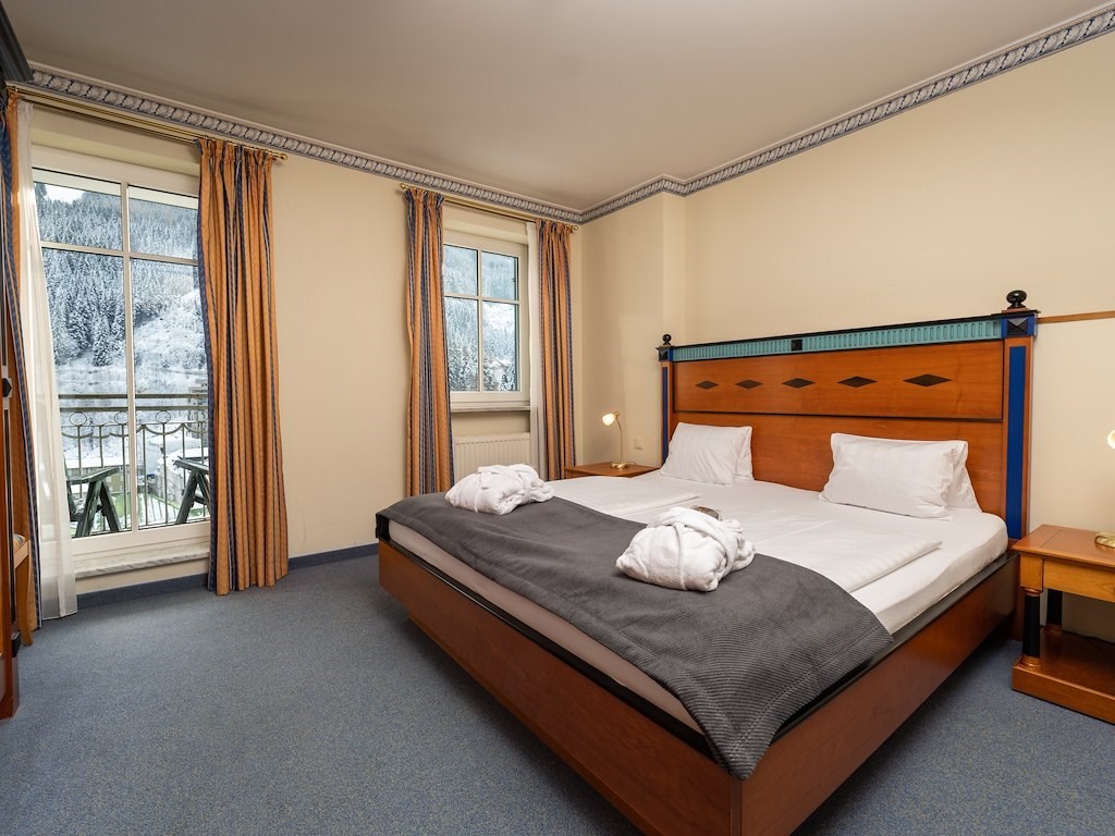 Elegantne zariadené , vzdušné dvojlôžkové izby s možnosťou prístelky sú vybavené sociálnym zariadením ( sprcha , toaleta , fén, župany do wellness ) , telefónom, kúrením, rádiom, satelitný TV, minibarom, trezorom a niektoré balkónom ( výhľad na hory alebo do údolia ) . Priestrannejšie rodinné izby s možnosťou až dvoch prísteliek majú naviac spálňu s dvoma samostatnými lôžkami , obývaciu izbu s kuchynským kútom ( základný riad , varič , mikrovlnná rúra , chladnička ) a rozkladacím gaučom , sociálne zariadenie a predsieň . Detská postieľka a vysoká jedálenská stolička je k dispozícii na vyžiadanie . WiFi na izbe je k dispozícii za poplatok . Všetky izby sú nefajčiarske .