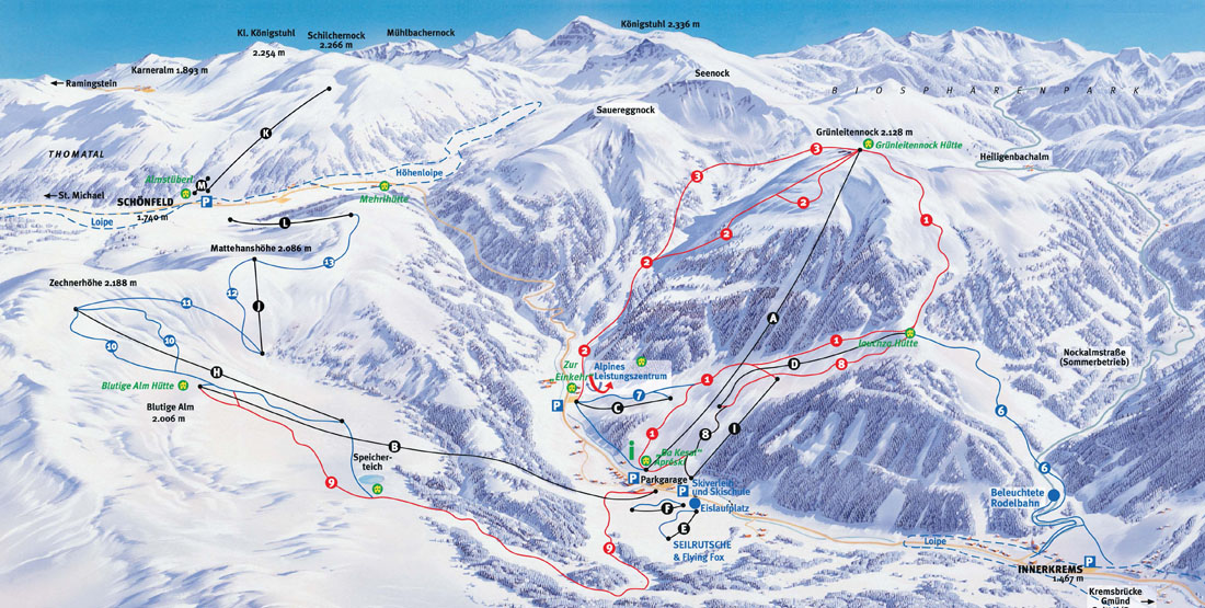 Rakúske lyžiarske strediskov pohorí Nockberge. Ponúka 45 km upravených zjazdových tratí vo všetkých úrovniach náročnosti, najviac však v strednej. Vďaka svojej nadmorskej výške je zaistený dostatok snehu počas celej sezóny. Ľahko dostupný rodinný areál s Bobo Kinder Parkem pro deti. Útulné občerstvenie priamo na svahu. Po lyžovaní je možné využiť upravované trasy pre zimnú turistiku, osvetlené sánkarské dráhy, ľadovú plochu na korčuľovanie či curling.