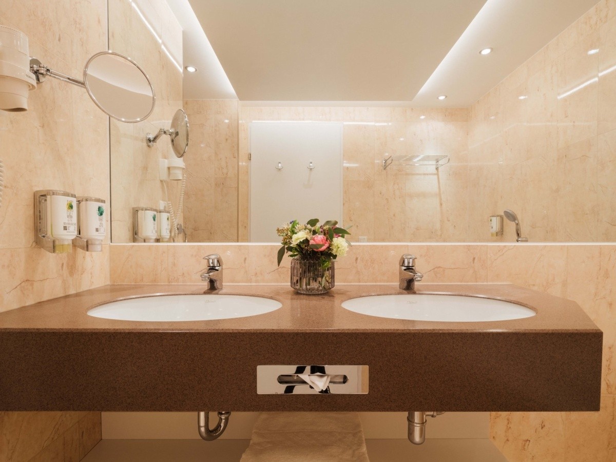 V pokojích je ústřední topení a koupelna. Hosté si mohou odpočinout na vlastním balkóně nebo na terase. V pokojích s kobercem je manželská postel typu queen size a rozkládací pohovka. Je možné požádat o přistýlku. Také je zde sejf, minibar a pracovní stůl. Ke standardnímu vybavení patří mini lednička. Hosté mají k dispozici žehlič kalhot. K základnímu vybavení patří telefon, televize, rádio a WiFi (zdarma). V koupelnách je sprchový kout. K dispozici mají hosté také vysoušeč vlasů, župan a telefon. Ke komfortímu vybavení koupelen patří kosmetické potřeby. V objektu jsou pokoje pro rodiny a nekuřácké pokoje.Strava