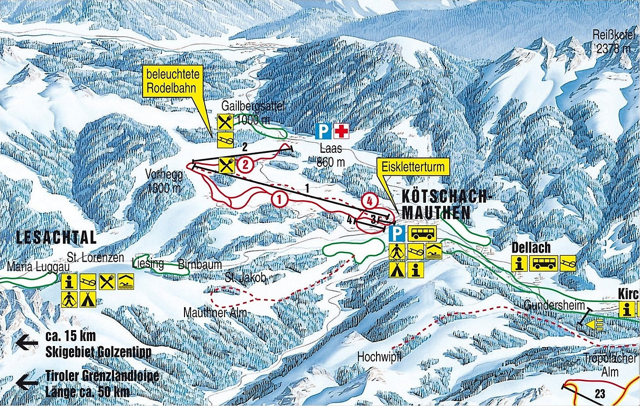 Menší lyžiarsky areál Kötschach-Mauthen ponúka skvelé podmienky pre rodiny s deťmi a zapálených snowboardistov. Tunajší terén je vhodný ako pre začiatočníkov, tak aj pre veľmi zdatných lyžiarov. Sú tu moderné prepravné zariadenia, ktoré sú veľmi rýchle. Na vrcholku si užijete nádherný výhľad na okolie.