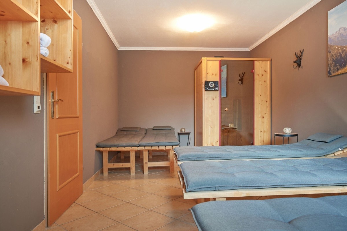 krytý bazén, wellness se saunou, párou a infrakabinou, lyžárna, wifi (cestovní kancelář negarantuje pokrytí či kvalitu Wi-Fi signálu), dětský koutek, parkoviště zdarma.